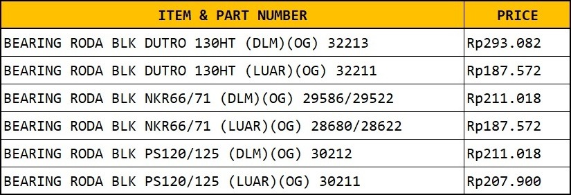 OKAYAMA GOLD BEARING RODA BELAKANG
