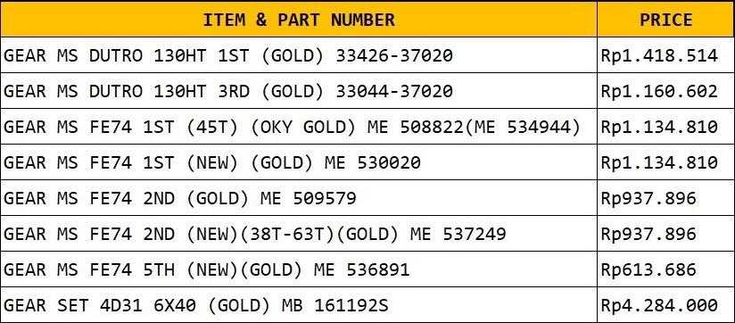 *Harga tercantum diatas tidak mengikat, sewaktu-waktu dapat berubah tanpa pemberitahuan.
