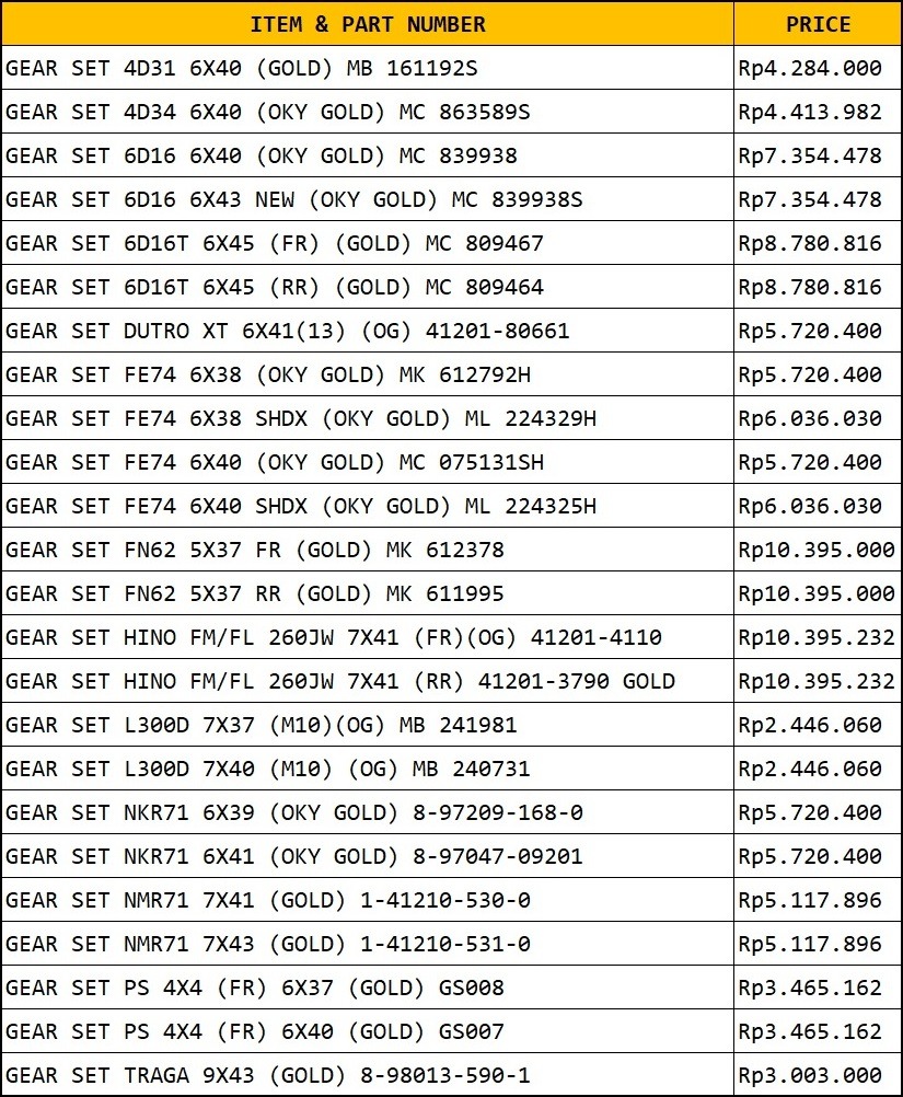 OKAYAMA GOLD GEAR SET