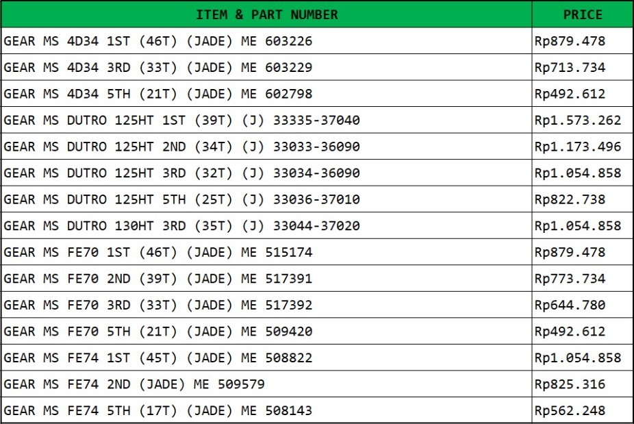 *Harga tercantum diatas tidak mengikat, sewaktu-waktu dapat berubah tanpa pemberitahuan.