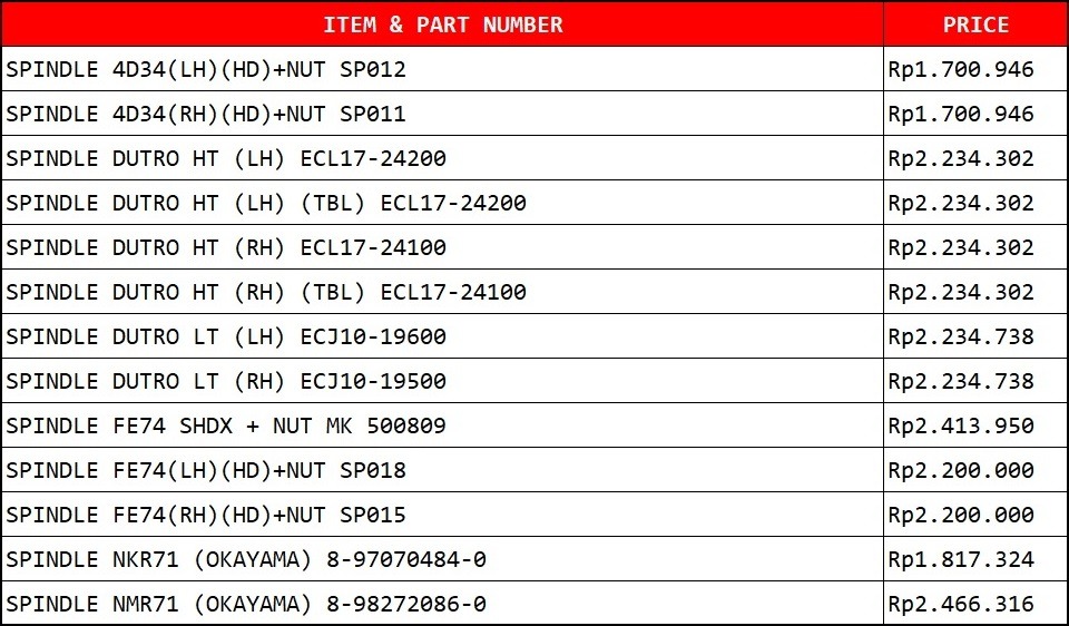 *Harga tercantum diatas tidak mengikat, sewaktu-waktu dapat berubah tanpa pemberitahuan.