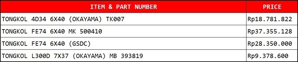 *Harga tercantum diatas tidak mengikat, sewaktu-waktu dapat berubah tanpa pemberitahuan.